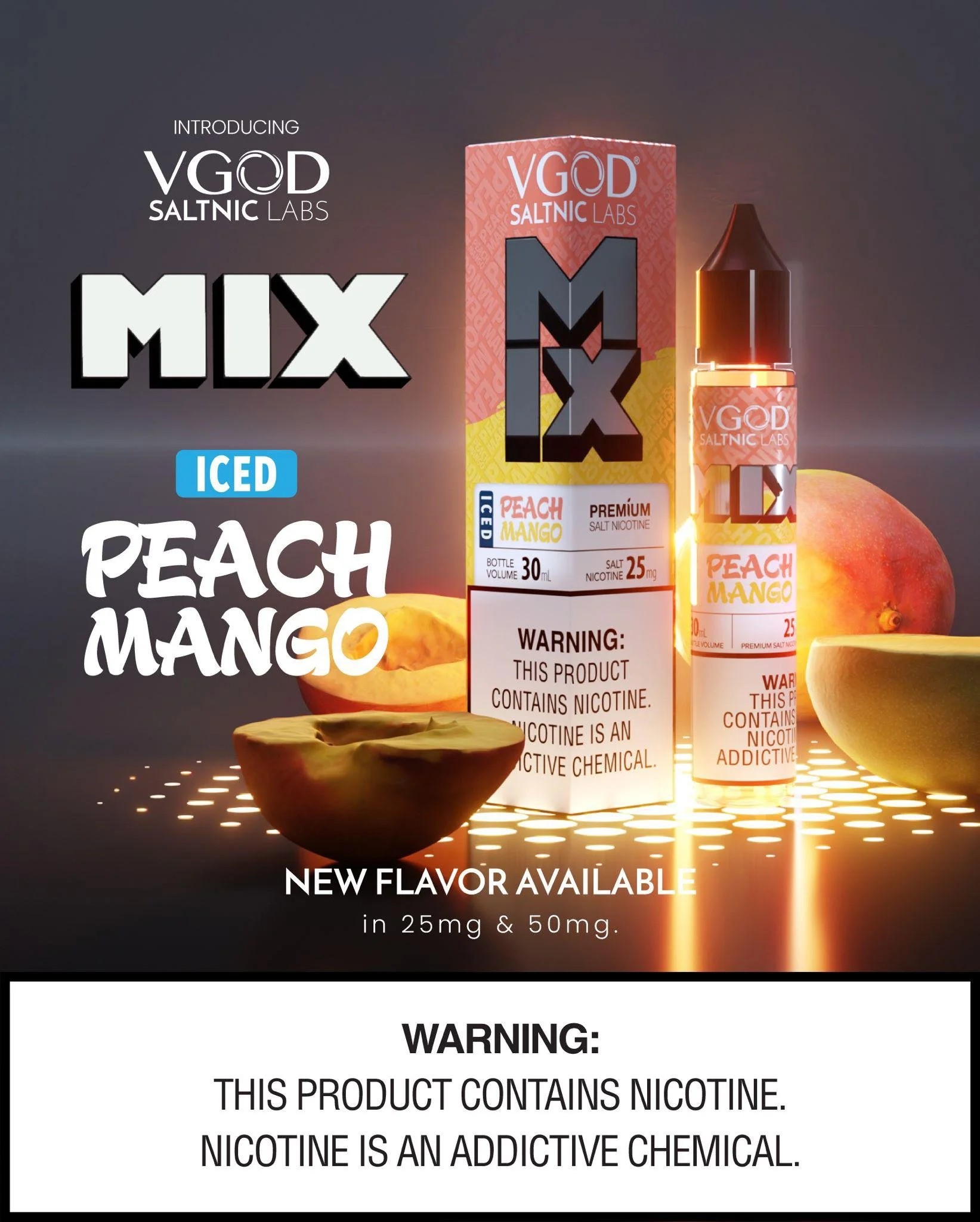 Immerse yourself in the succulent sweetness of ripe peaches and juicy mangoes, kissed by a refreshing blast of icy coolness from this Iced Peach Mango Premium SaltNic. With every inhale, it’s a flavor symphony that transports you to sun-drenched beaches and swaying palm trees. Crafted for those who crave bold, juicy, and exotic flavors, this blend is a tempting escape from the ordinary. Treat yourself to the perfect harmony of VGOD’s Iced Peach Mango fusion, and let your taste buds sing.